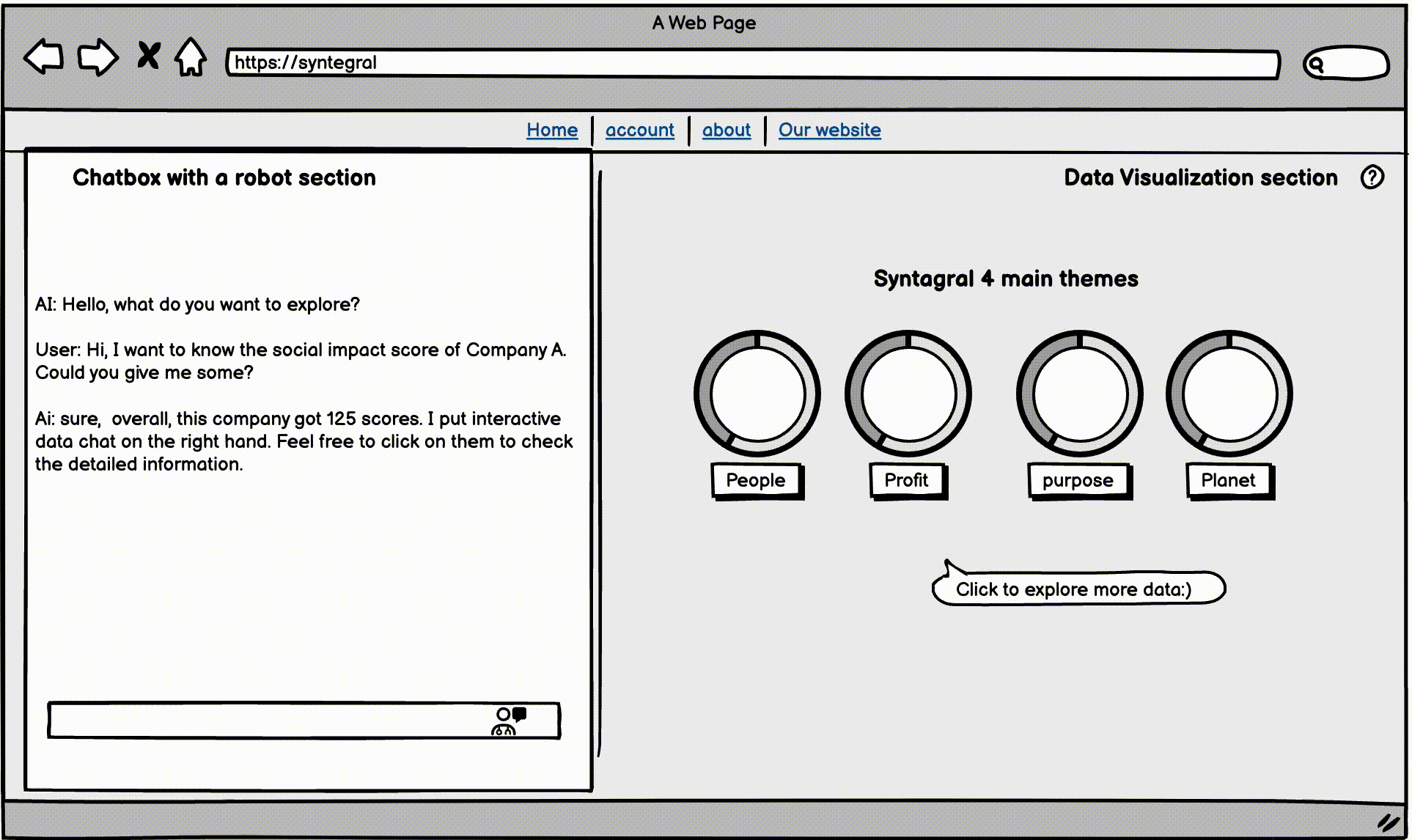 Syntegral AI is a Data Visualization version of chat GPT, and interactive data operation page design is challenging. I work with 1 CEO, 1 CTO, 1 developer, and 4 data analysts to better group the data set and make it easier to search and interact.